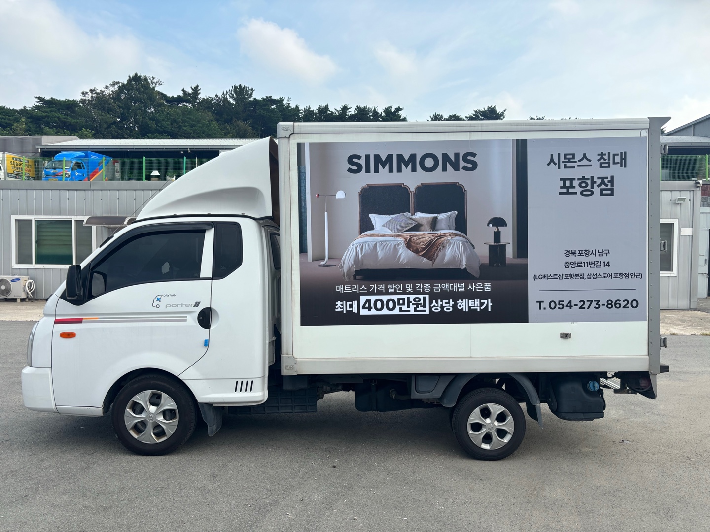 시몬스멘션 포항점 택배차 광고
